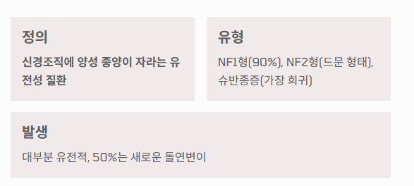 신경 섬유종증(Neurofibromatosis, NF)은 신경조직에 양성 종양이 자라는 유전성 질환입니다.