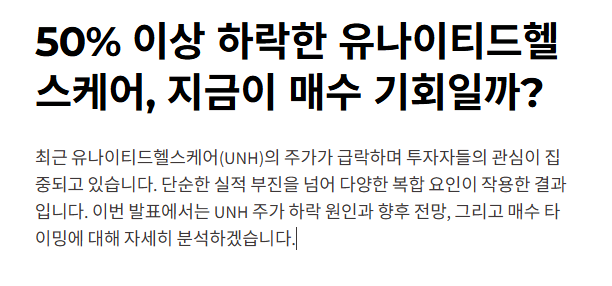 📉 50% 넘게 주가가 빠진 유나이티드헬스케어, 지금이 매수 타이밍일까요?