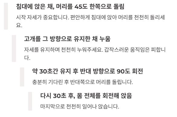 🔁 이 과정을 양쪽 방향으로 하루 2회 반복하면 3일 이내 증상이 개선되는 경우가 많습니다.