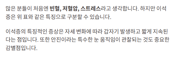 ❗ 하지만 장기 복용은 근본 치료가 아니며, 이석증은 물리적 위치 문제가 원인이므로 움직임 기반 치료가 우선입니다.