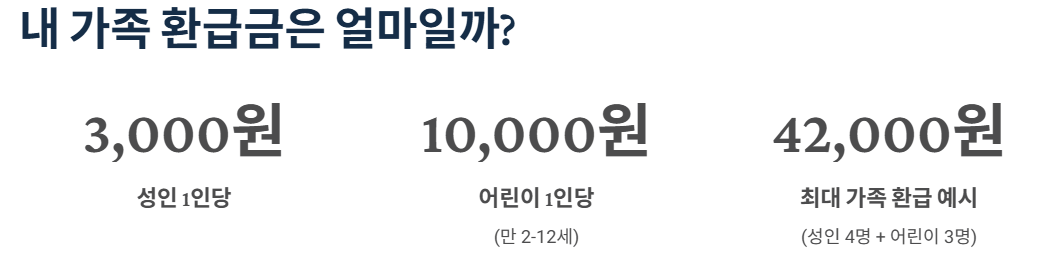 특히 어린이나 청소년과 함께 가족여행을 하신 분들은 1인당 최대 1만원, 성인도 3천원씩 환급받을 수 있어 가족 단위로는 상당한 금액이 될 수 있습니다.
