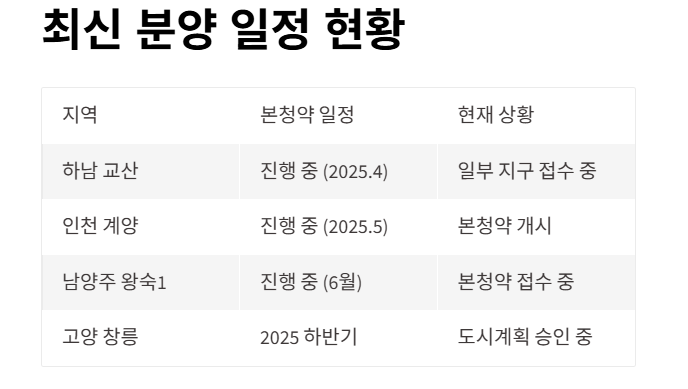 현재 시점은 2025년 6월, 드디어 본청약이 시작되거나 임박한 지역들이 속속 등장하고 있죠.